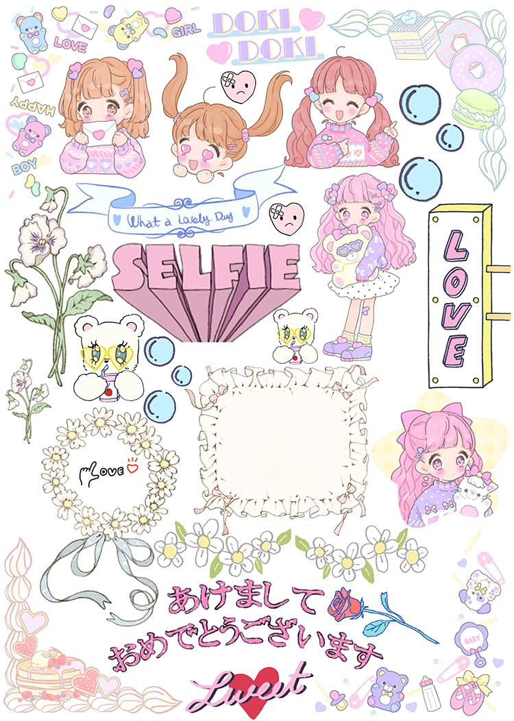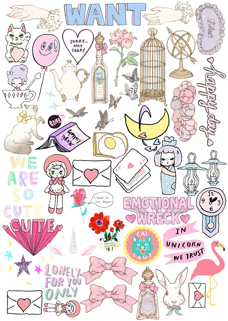 Mouth home account sticker sulfuric acid paper sub-surface uncut A4 my girl heart series flamingo pink