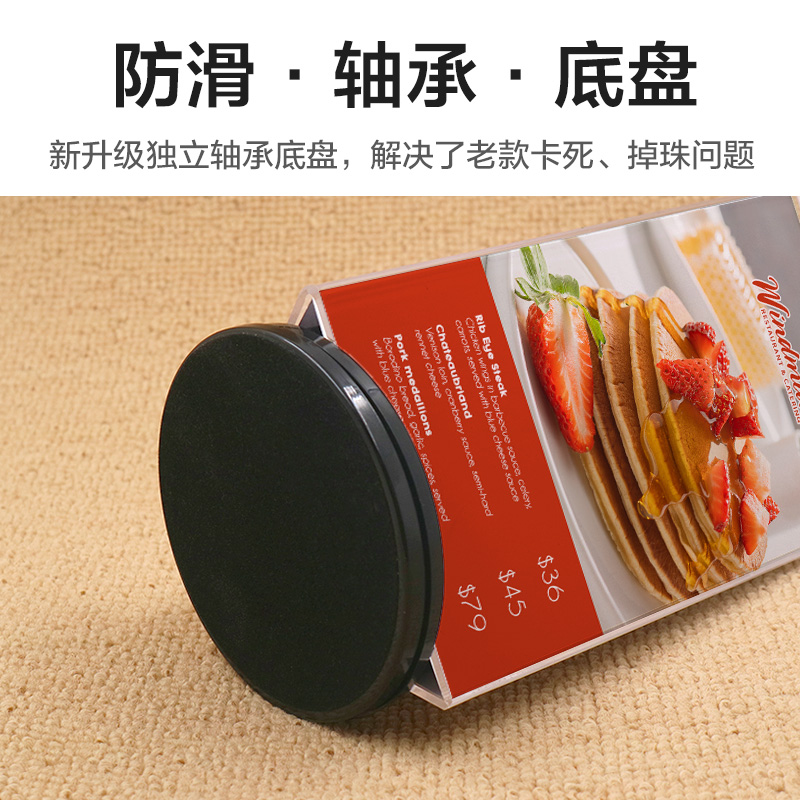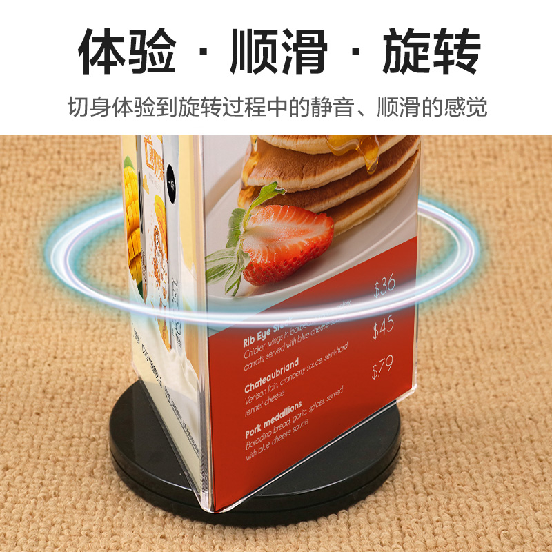Three-sided rotating table card triangle acrylic card Triangle menu table wine card a4 table wine price card Menu table card Crystal tripod table card display card table card billboard