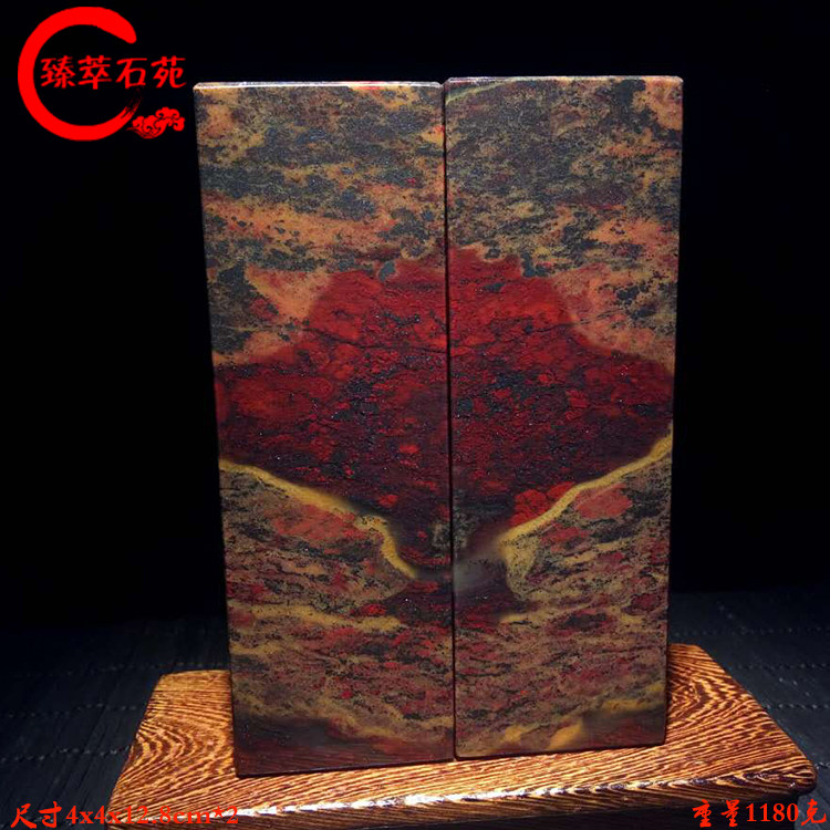 Stone seal Guilin Chicken Blood Jade Original Stone Pendulum Pieces Jade Seal Material Collection Seal Engraving Preferential Lettering to the Chang