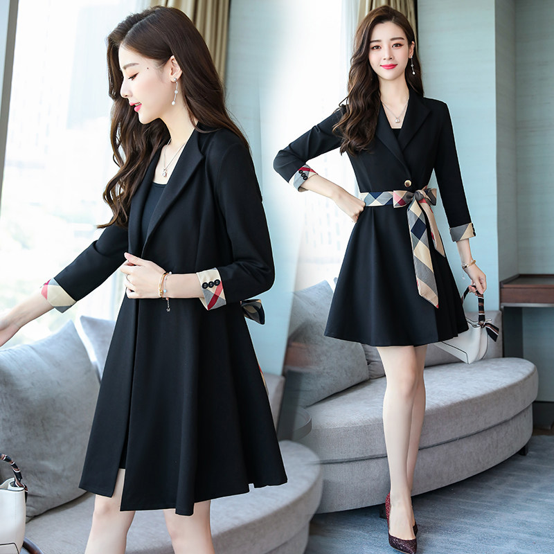 Windbreaker dress 2023 early spring new women's shirt long skirt waist thin temperament skirt spring and autumn