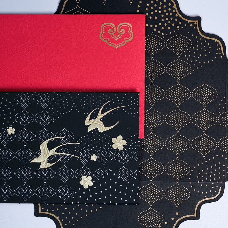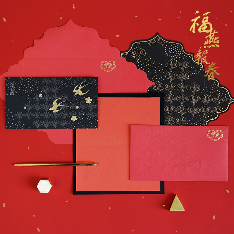 Byears White Night Original Auspicious Cloud Ruyi Black National Wind Mid-Autumn Festival Thanks Card Chinese Blessing Business Set