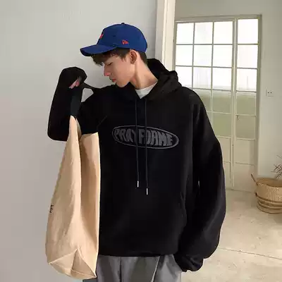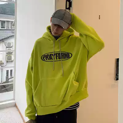 Hooded sweatshirt men's green jacket Korean version of the trend couple tide brand loose vetiver Hong Kong style ins tide brand wild