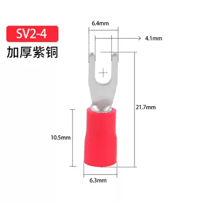 SV2-4 national standard copper fork-shaped cold-pressed terminal U-shaped copper terminal pre-insulated connector wire nose lug
