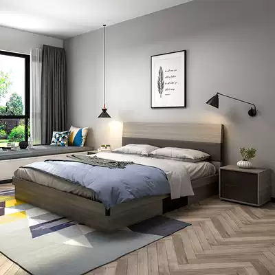 Double bed Nordic modern minimalist master bedroom storage bed High box bed rental room Small apartment bed 1 8 meters 1 5 meters bed