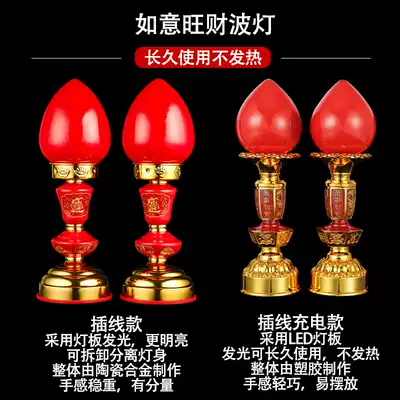 LED plug-in lucky fortune electric candle wave lamp Electric candle holder ornaments God of wealth lamp pair for Buddha God Taiwan New Chinese style