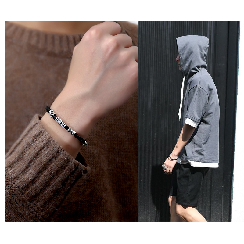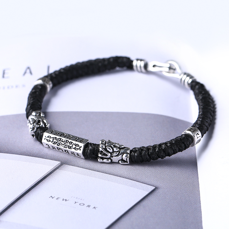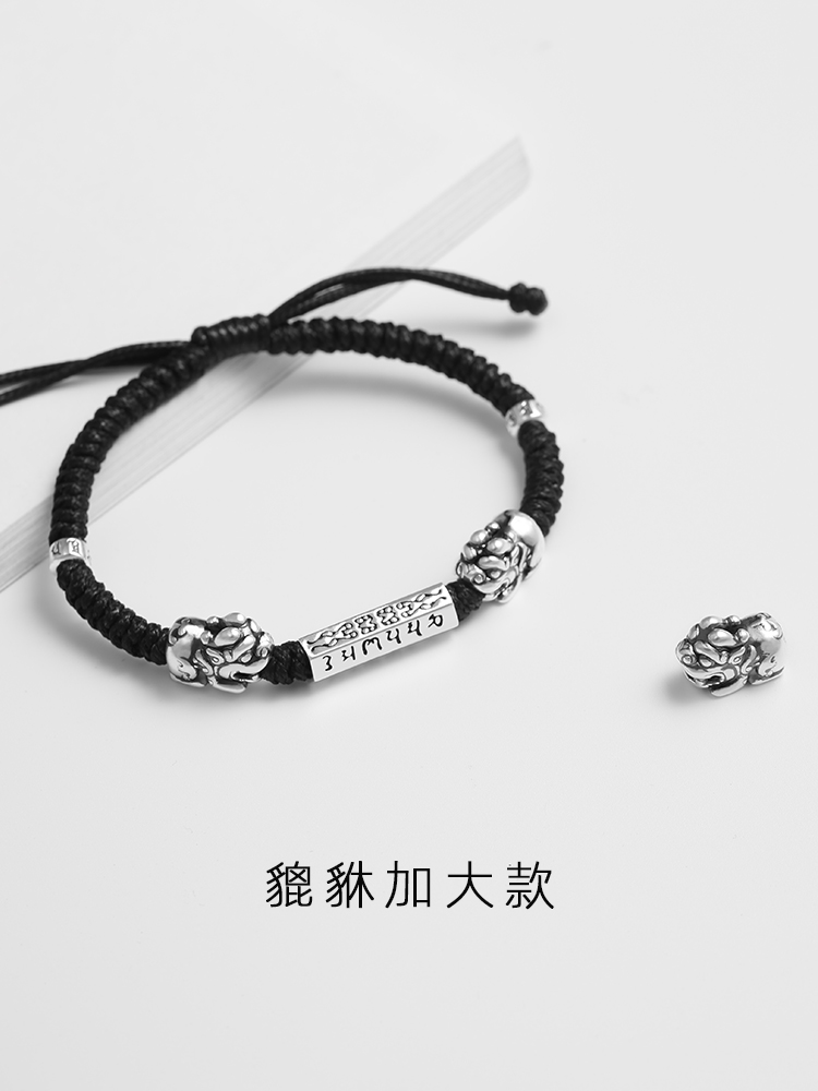 Pure Silver Leopard Leopard Hand Refining Male Tide Superior Personality Small Crowdsourced Design This Life Year Braided Red Rope Simple And Generous Hand Rope