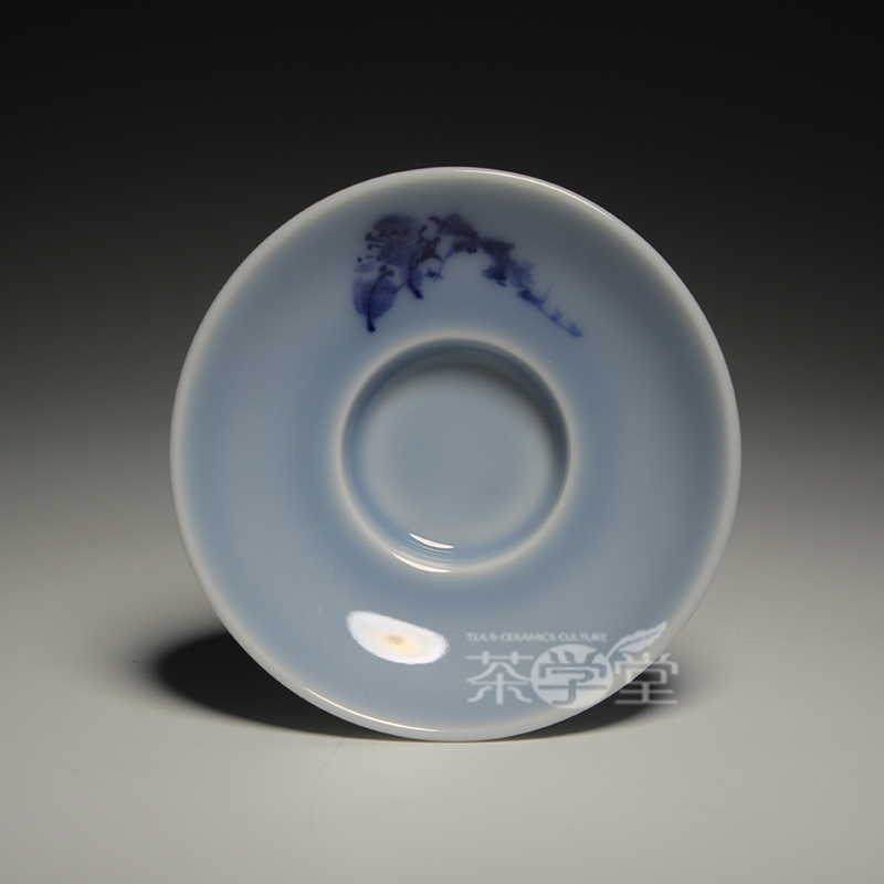 Taiwan ceramic master Cai Xiaofang kiln hand-painted blue and white sea blue glaze orchid cup set of one cup one cup tray tea cup tea set