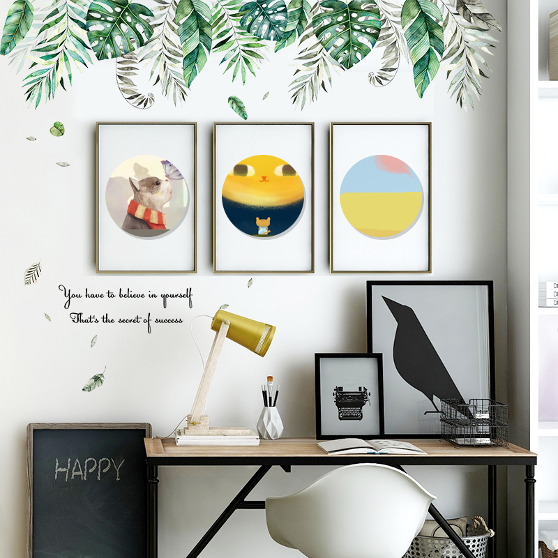 Zoo fresh tropical plant wall sticker literary and art living room bedroom decoration warm self-pasted