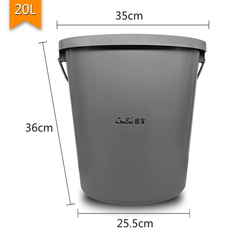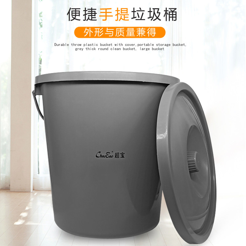 Fall-resistant and durable with lid plastic bucket portable storage bucket gray thickened round cleaning bucket large bucket 20 liters