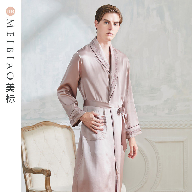 American spring and summer men long sleeves 19 mmie pounds of real silk pyjamas sauna silk sleeping robe silk palate silk palate