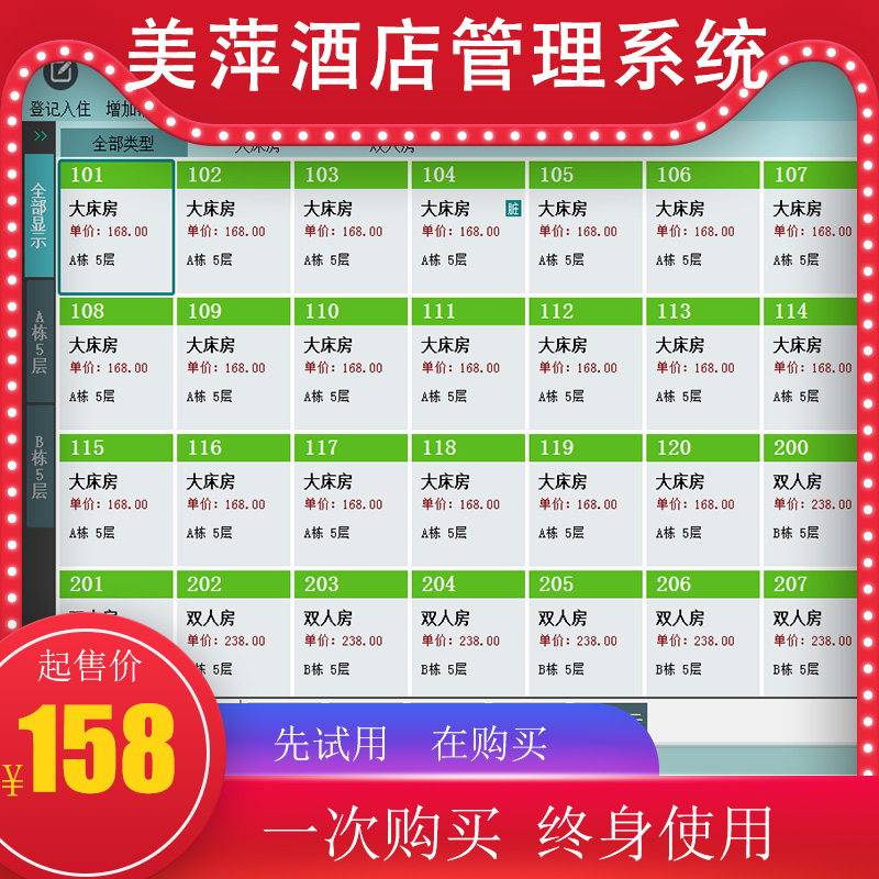 Software new Meiping hotel front desk cashier hotel room hotel apartment management system resort door lock