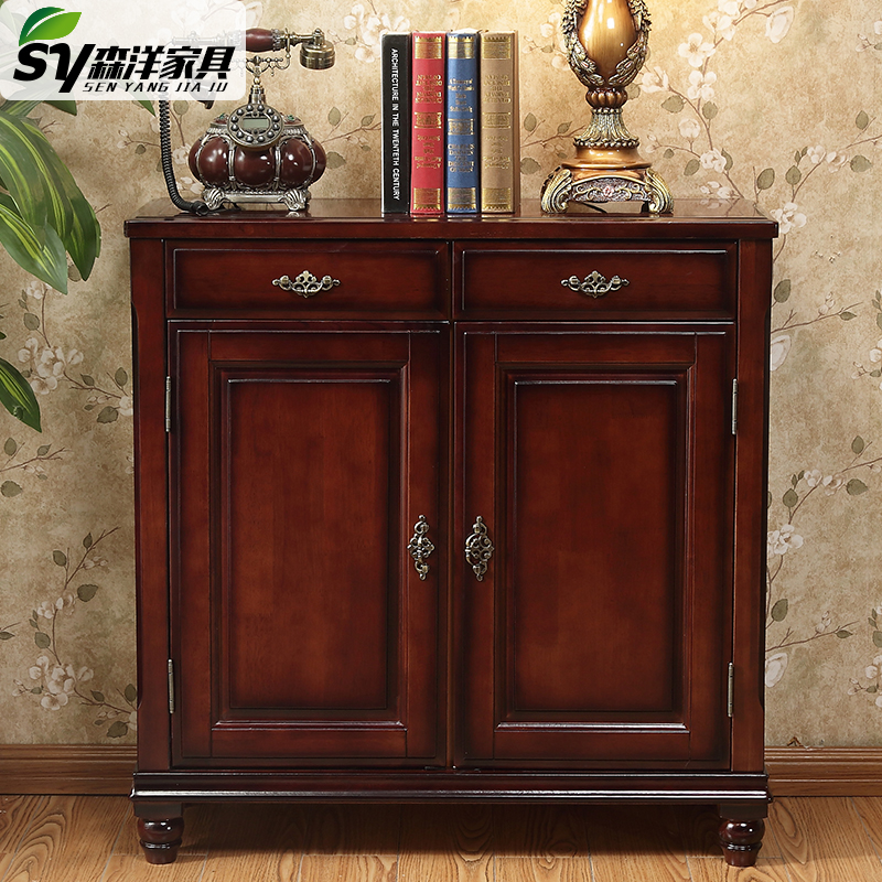 American countryside antique making old plate Chestnut Ribbon Drawers Two Doors Three Doors Open to Contained Storage Oak Full Solid Wood Shoes Cabinet-Taobao