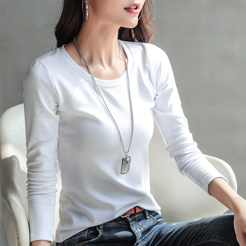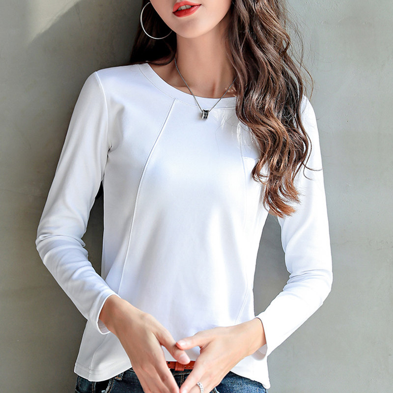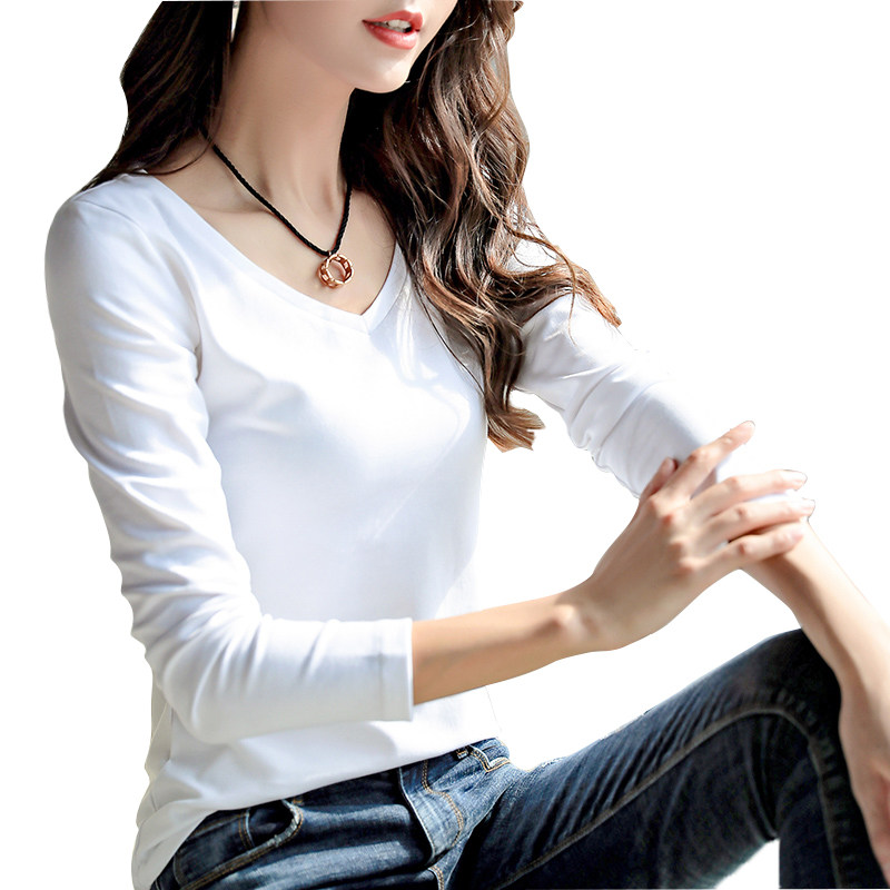 (2 pieces RMB59 ) Early autumn lady 2022 new long sleeve T-shirt woman V collar white undershirt Korean version T-shirt blouse