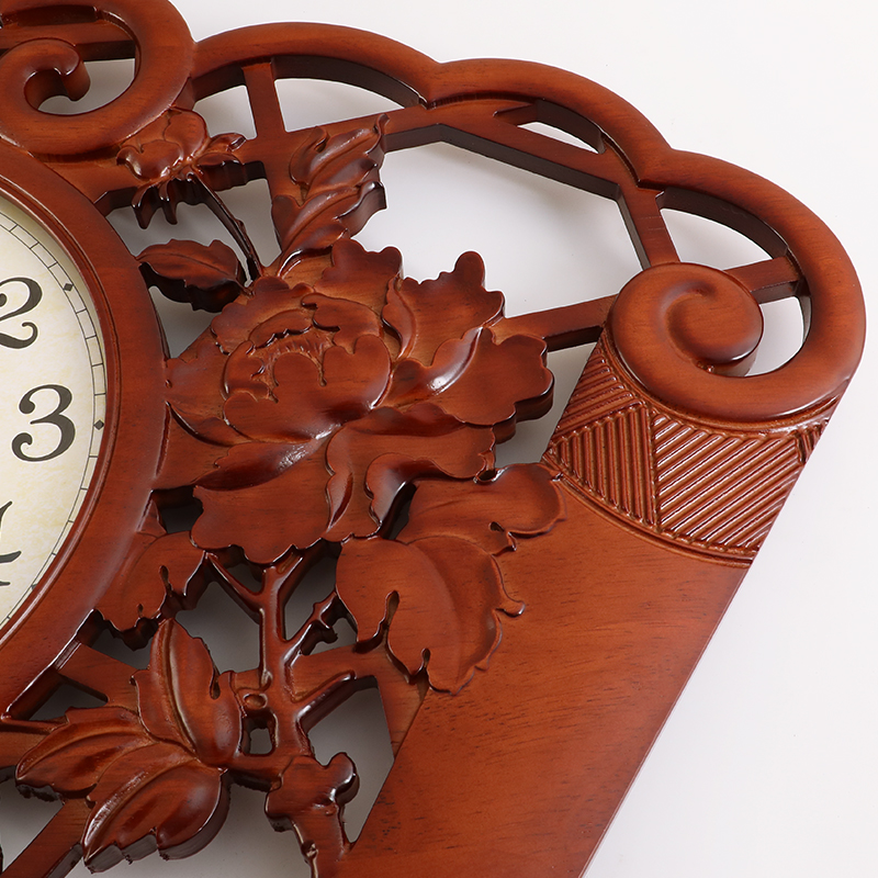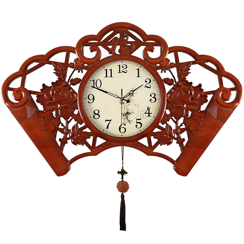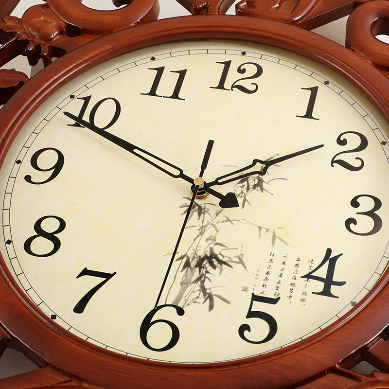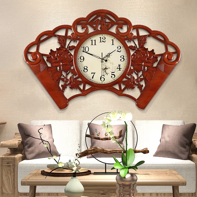 Living room solid wood wall clock Chinese style clock silent home creative personality atmospheric decorative clock New Chinese hanging watch