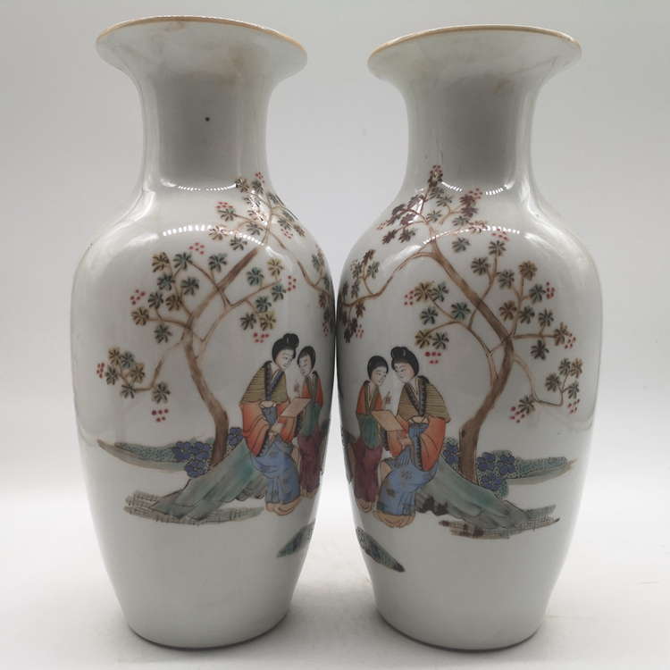 Family of the Republic of China Tang Zizhen Hand-painted Pink Ladies Painting Vase Illustrator Vase Imitation Antique Palace Bookcase Swing porcelain