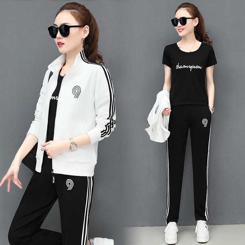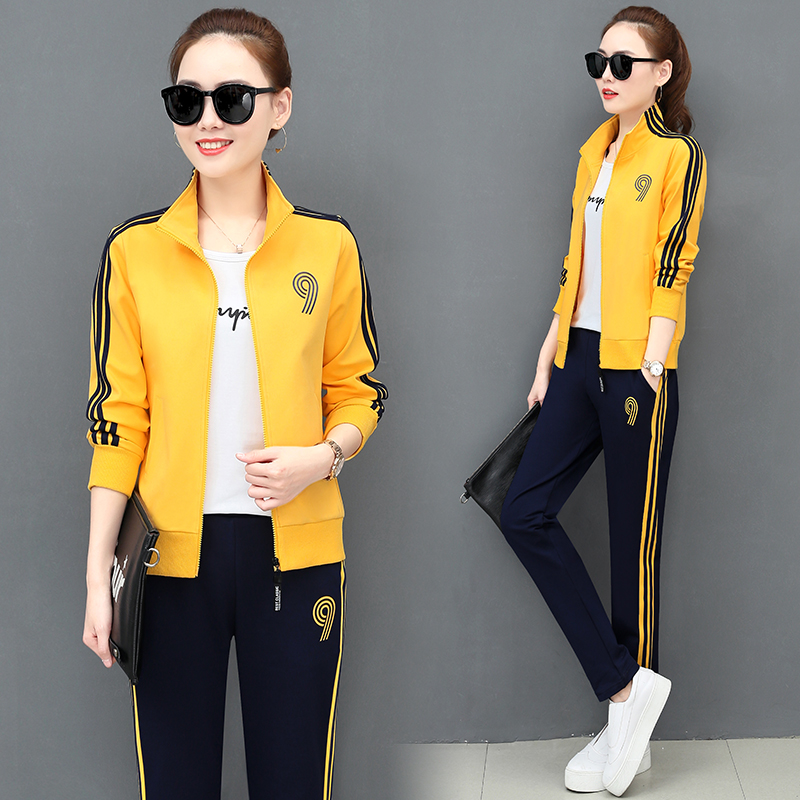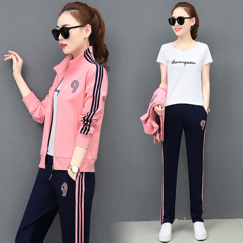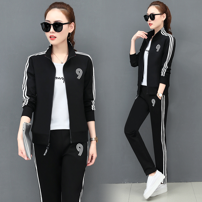 Sportswear suit women's spring and Autumn season 2019 new edition fashion large size Korean long-sleeved running leisure thick cotton three-piece set
