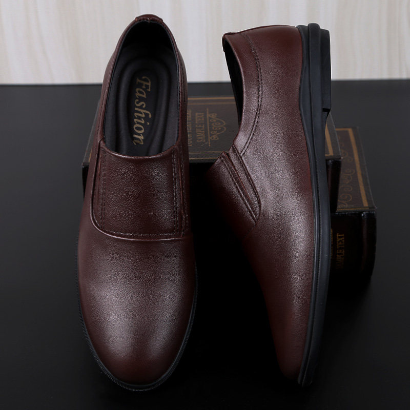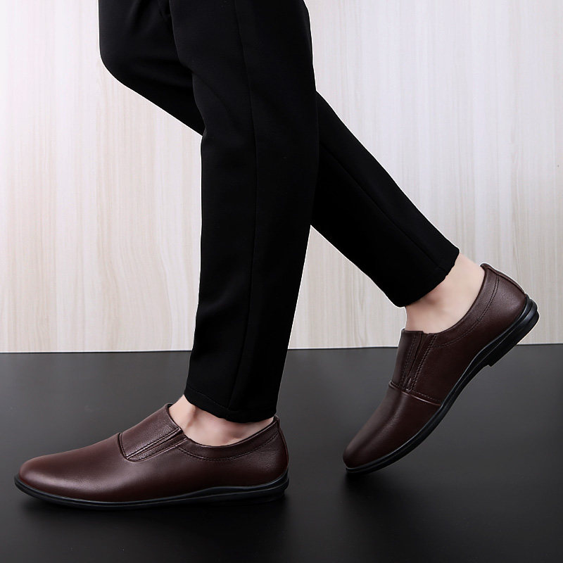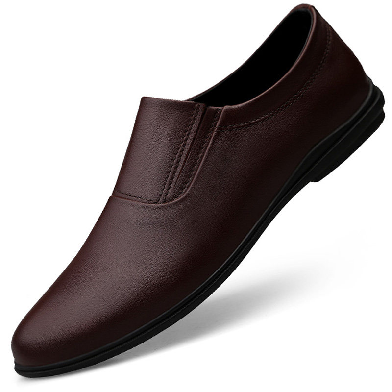 Ou Fei Lang brown men's leather shoes leather British style men's shoes cover foot fashion casual shoes Korean version of beanie shoes for men