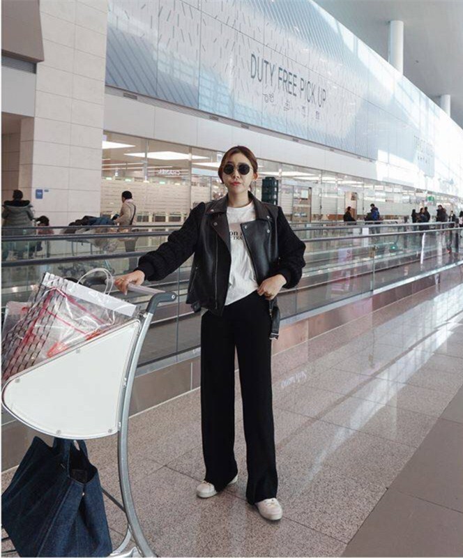 Black Pregnant Woman Broadlegged Pants Spring Autumn Easy Winter Plus Suede Pants Warm Sports Pants Straight Outside Wearing Casual Long Pants