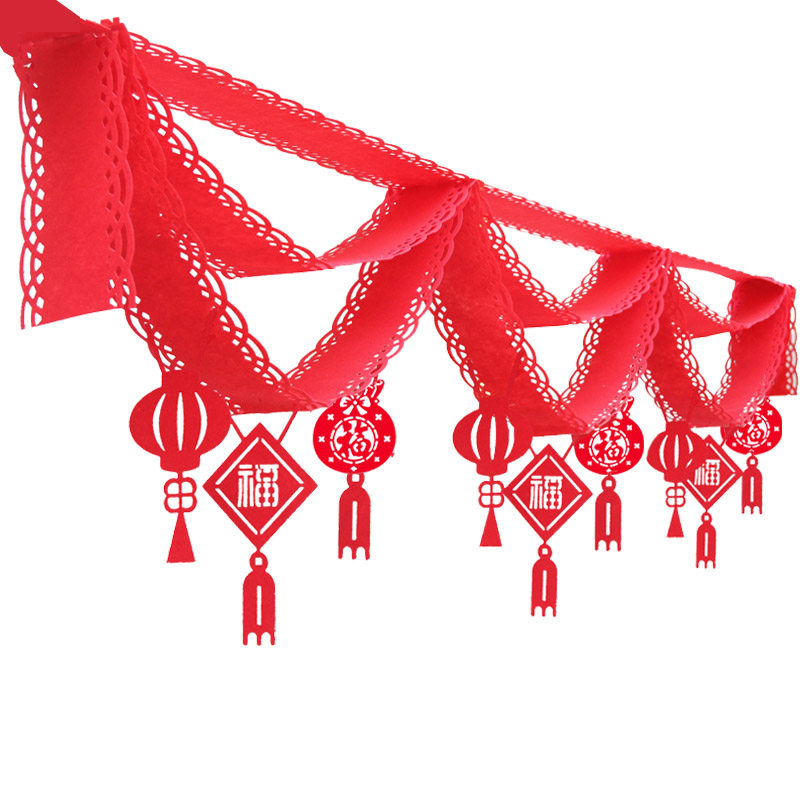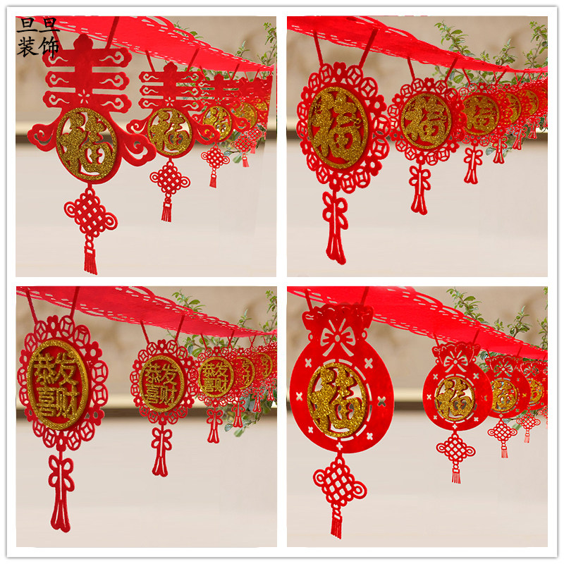 Fortune Lord Fu Characters Solid Lakflowers New Year Happy-Fu Characters Solid Raffin Triple Wave (New Year Happy) Three Layers Wave Flags (Fu Characters) Compliment Solid Pull Money Bags Foo Solid Lakflowers New Year Happy Solid