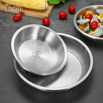 Tao Di 304 stainless steel plate disc flat bottom thickened plate Household fruit plate plate fish plate barbecue plate