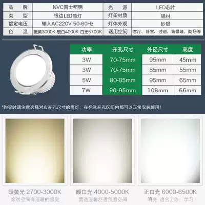 NVC Lighting LED downlight 3w hole light 8 cm Embedded suspended ceiling Sand silver aisle Living room ceiling bucket light Spotlight