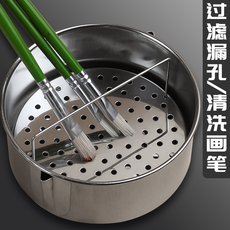 Oil painting oil pot Stainless steel pen washing pot leak-proof with lid pen washing bucket anti-volatile media container color grading small oil pot pen washer supplies turpentine