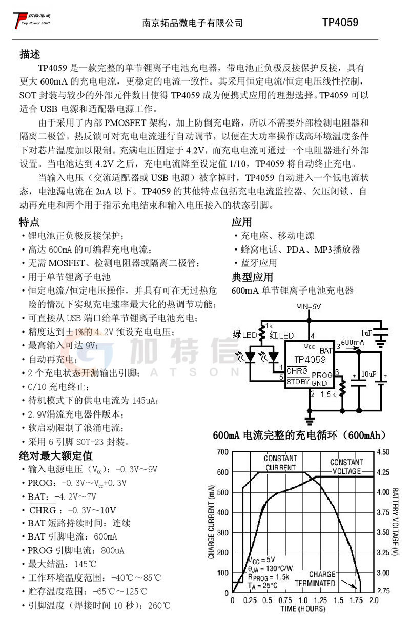 TP4059 package SOT23-6 Nanjing Tuowei original 600mA single-cell lithium battery charge management IC chip