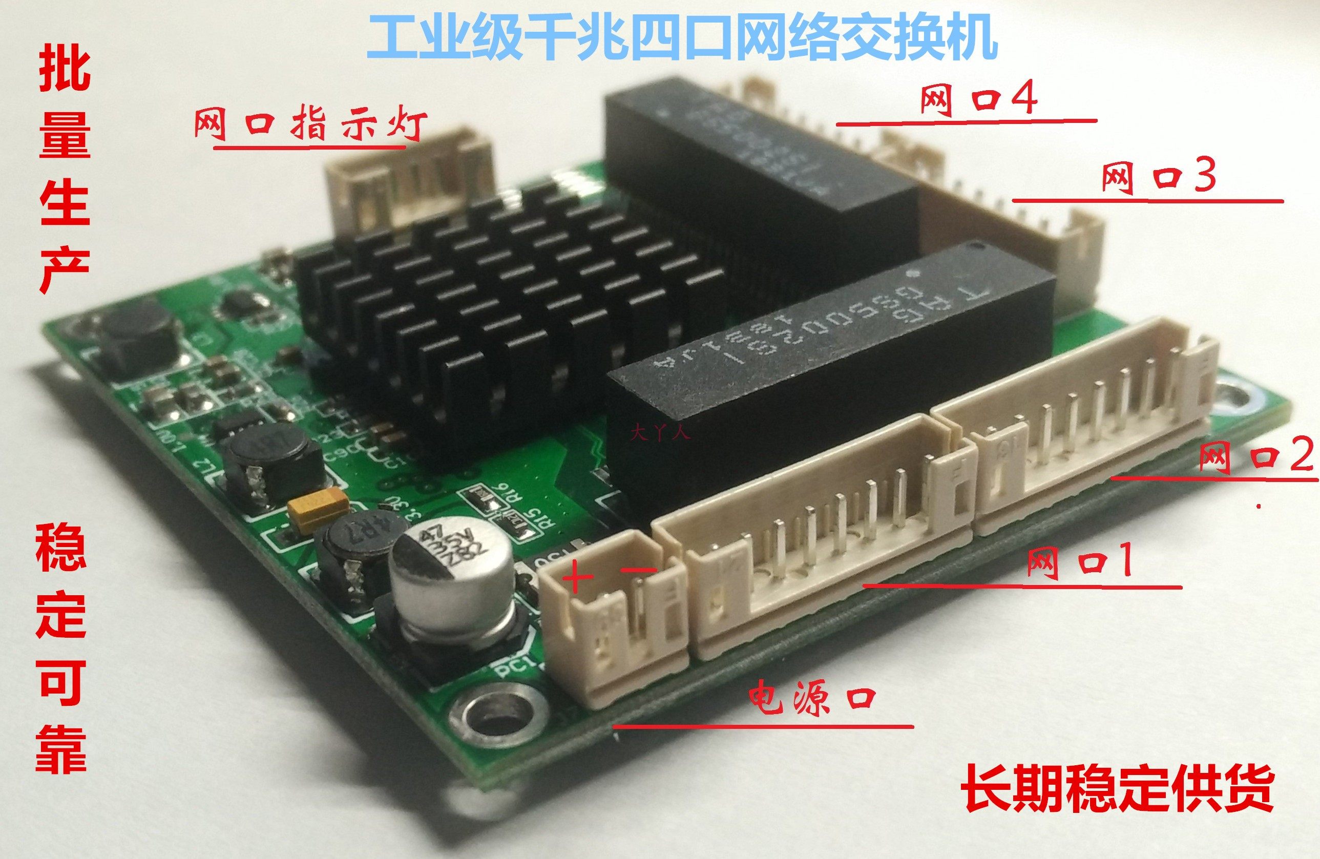 Industrial grade Mini micro low power consumption row pin 3 4 mouth 1000M quad one thousand trillion Internet switch Main board module
