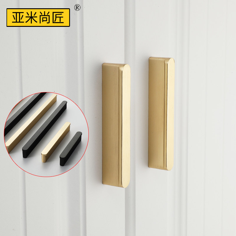 Yami Shang craftsman light luxury gold drawer handle modern simple copper black cabinet Nordic wardrobe cabinet door handle