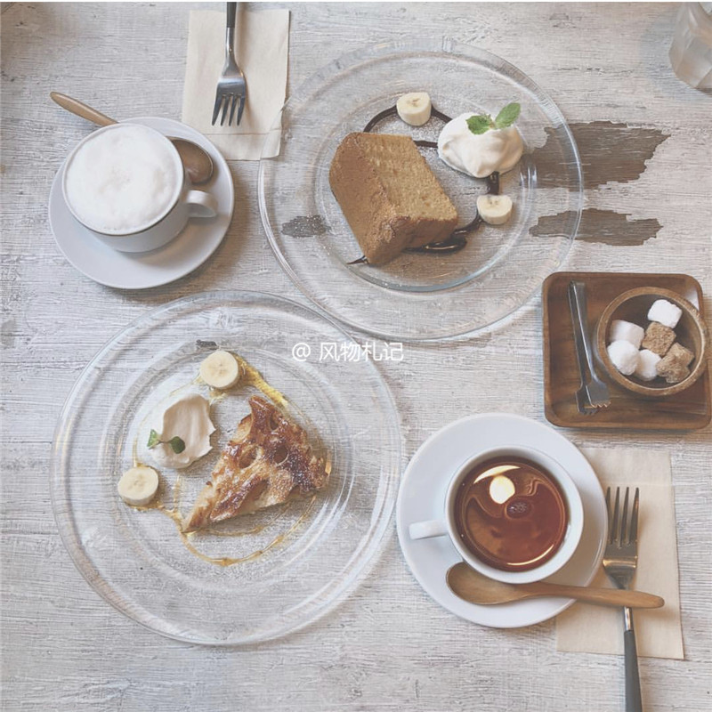 Korean Wind Chic Pure Color Transparent Glass Dishes Dessert Fruit Pan Coffee Shop Swing Pat Props Ondo Same