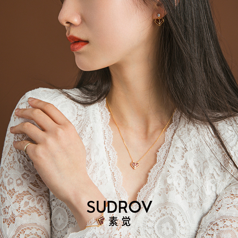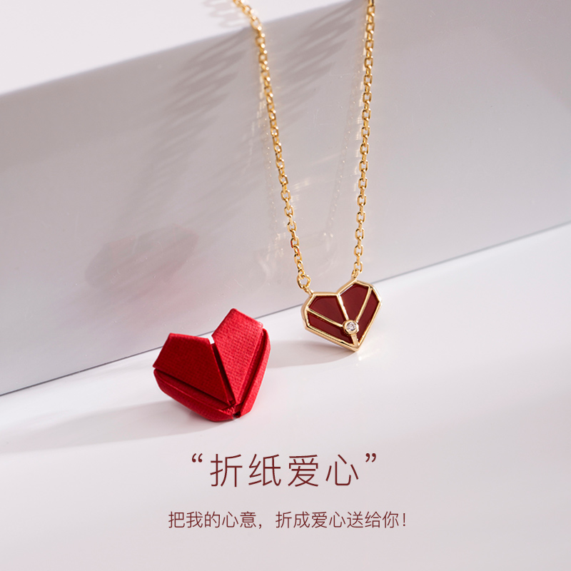 Little red heart necklace (gold) 18K gold necklace (custom gift box) 925 silver small red cardiac necklace Bracelet 925 silver red cardiac necklace Ear crash 925 silver red core necklace