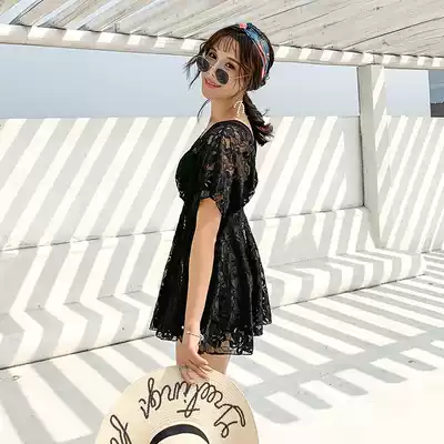 Large size lace hot spring solid color swimsuit female Conservative fat mm200 Jin belly thin 2020 Summer Korea ins