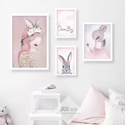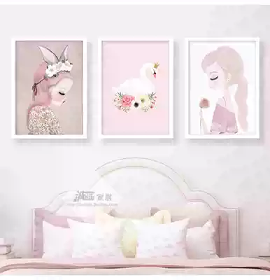 ins Nordic style decorative painting Princess bedroom bed head hanging painting Pink children's room girl girl heart combination wall painting