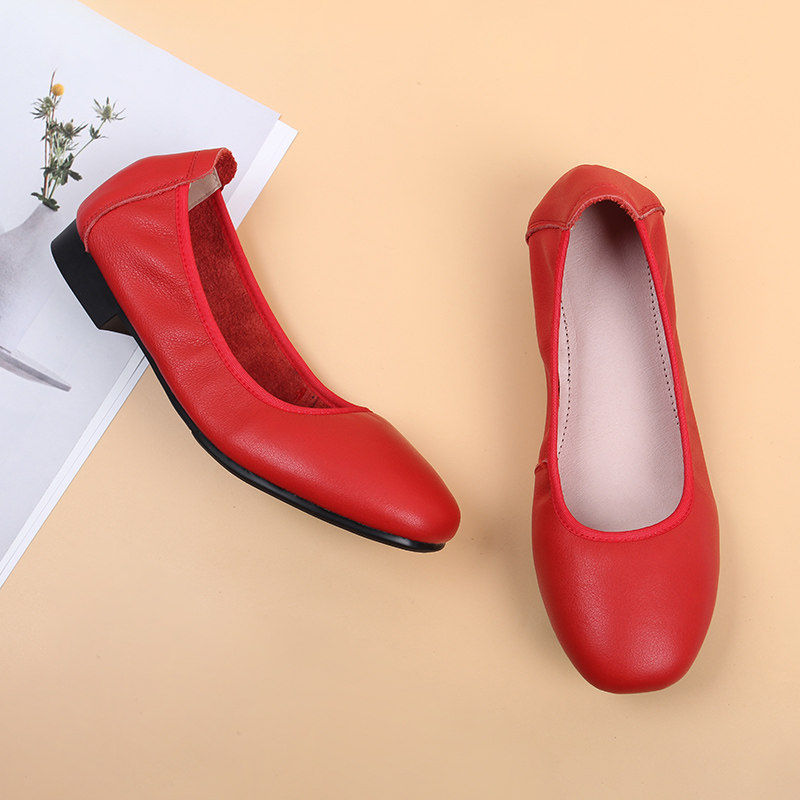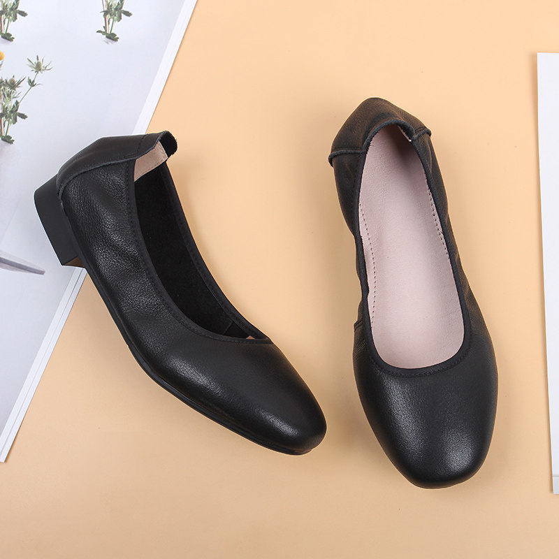 New leather round toe commuter flat soft bottom work shoes egg roll comfortable mother shoes leather shoes professional work shoes women