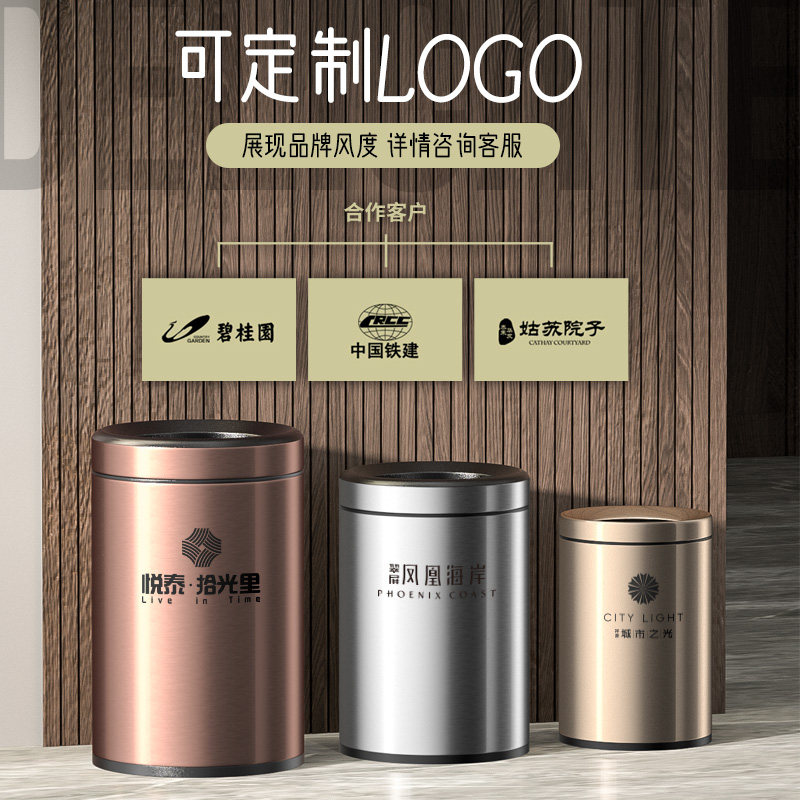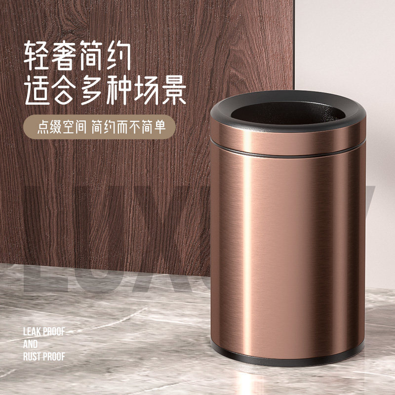 Dustbin stainless steel round pressure ring home living room kitchen powder room Italian light luxury simple large no cover