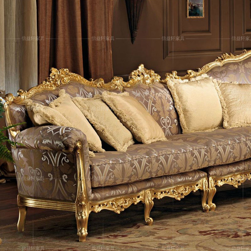 Eurostyle sofa Large family type Villa Corner Solid Wood Carved sofa French style fabric combined sofa Living room furniture