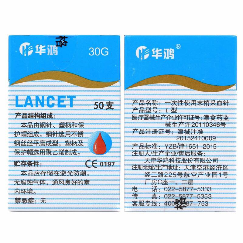 Huhong Tail Tip Disposable Sterile Blood Needle 50 Type I Blood Glucose Laxative Blood Needle Discharge Pen Used 30G