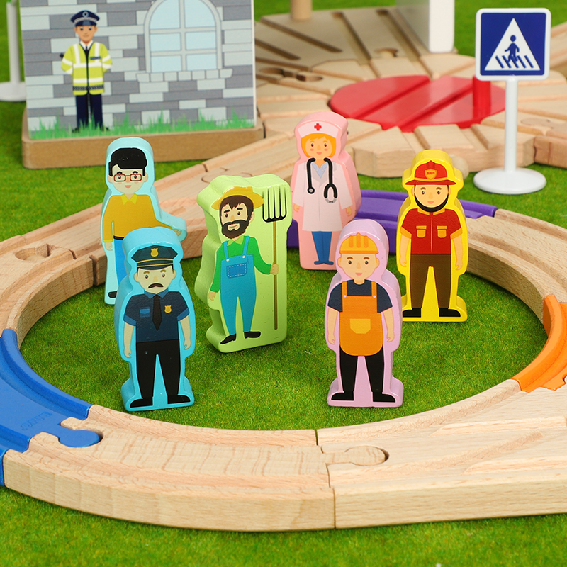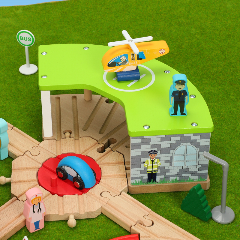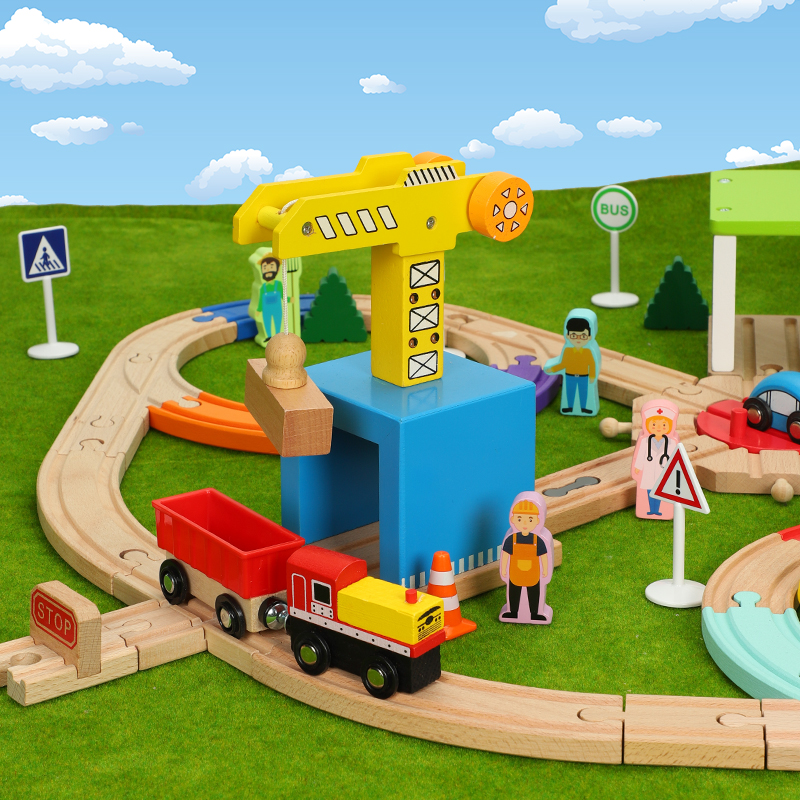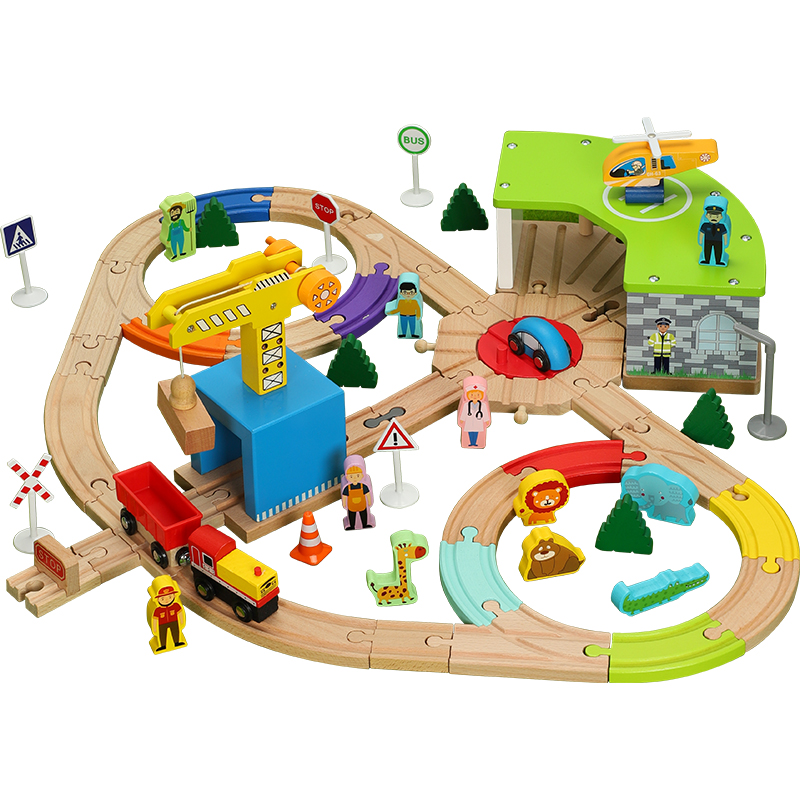 Wooden track train set wooden small train building blocks magnetic locomotive children's toys compatible with rice rabbit small