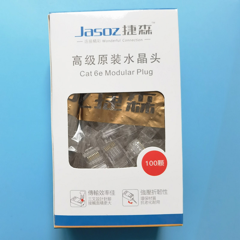 Engineering grade super six gigabit unshielded network crystal head passed Fluke test 3U gold-plated 100 pieces