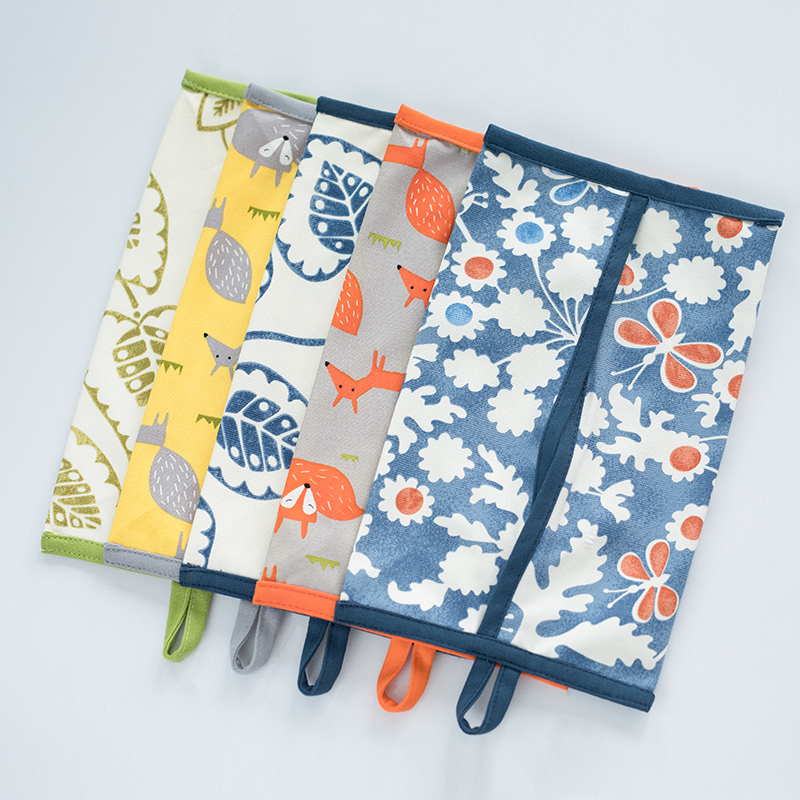 Green pineapple-paper towel bag Blue pineapple-paper towel bag Blue floral-paper towel bag Gray bottom orange fox-paper towel bag Yellow bottom gray fox-paper towel bag