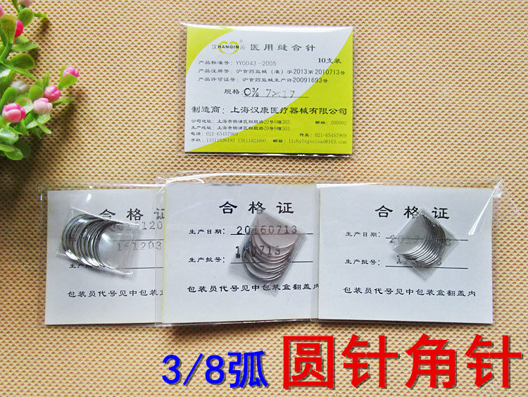 Medical suture needle 3 8 arc stitch pin triangular needle semicircle pin leather needle surgical cosmetic double eyeball leather stitching needle