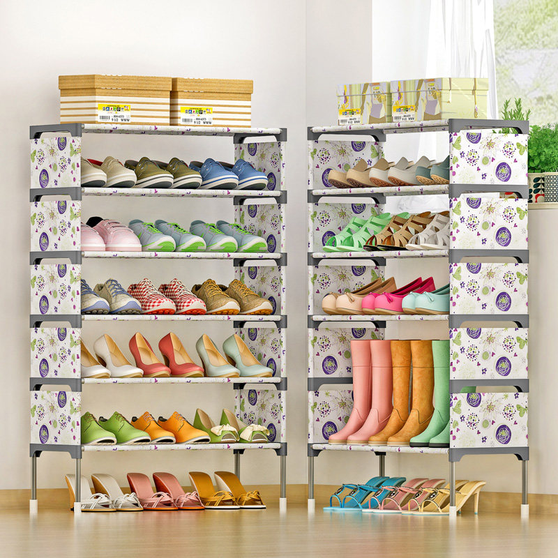 Simple doorway multilayer shoe rack small and narrow assembly anti-dust shoe cabinet economy type iron art containing layer frame shoes containing deviner