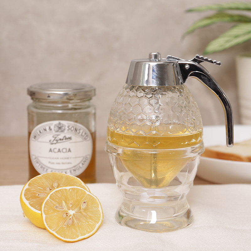 Japan imported push-type glass honey jar Transparent non-stick hand leak-proof honey bottle with base