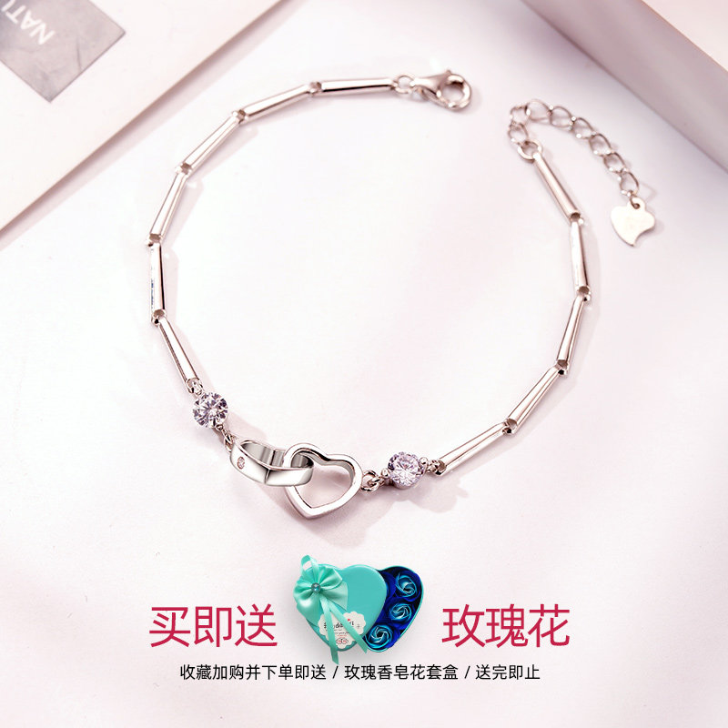 Lovers pure silver handmade female heart-shaped student Jane Yoonnet red son Girlfriends Crystal Hand Alchemy small crowdsourced design