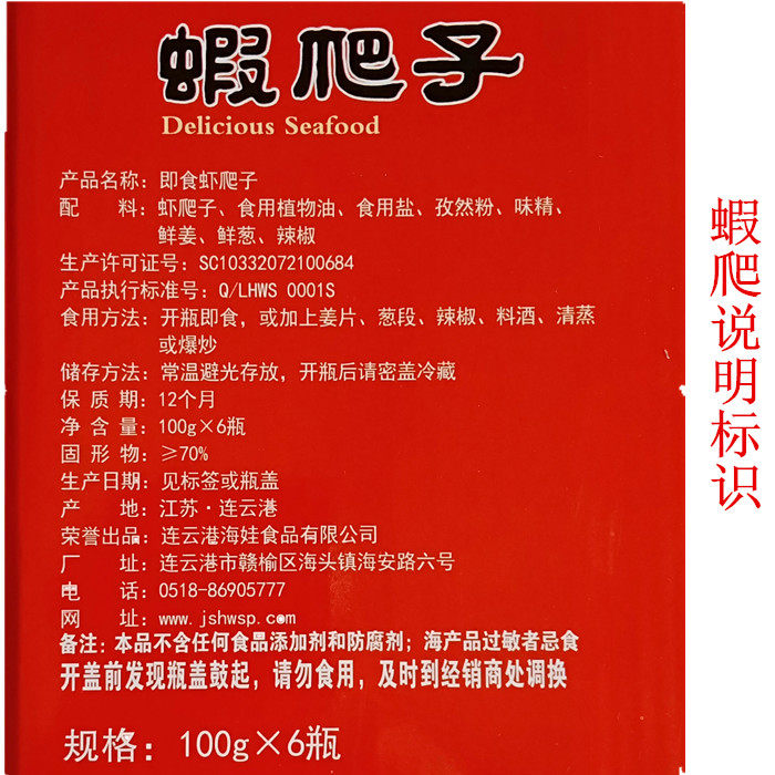 Jiangsu Lianyungang Special production of ready-to-eat sea products Shrimp Crawling peppers Salt Peel Shrimps Spicy 100g * 6 Bottle Gift Boxes