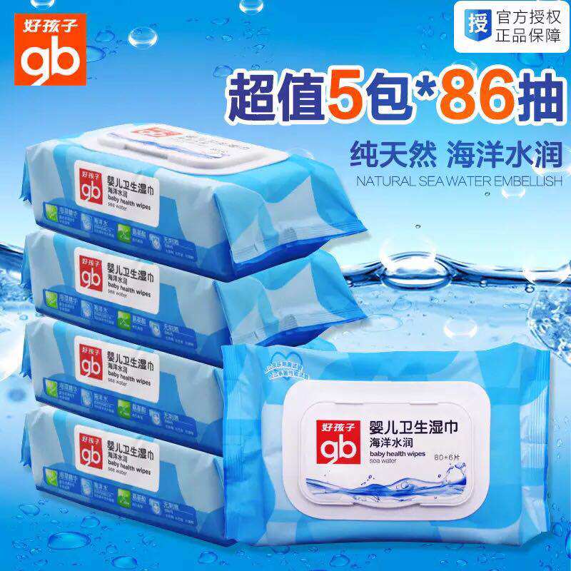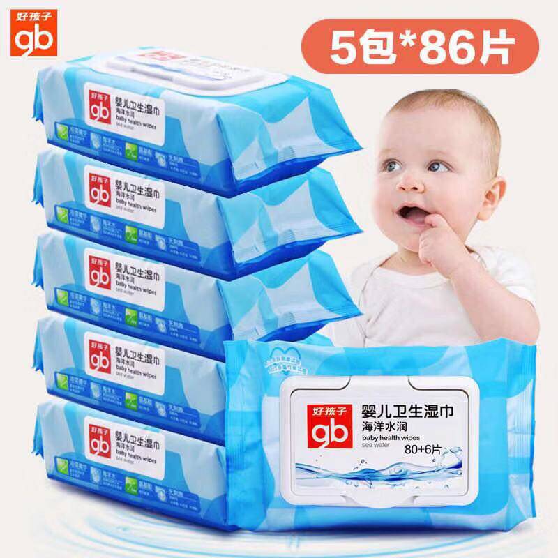 Good baby wet tissue newborn baby clean hand mouth wipe fart wet tissue 86 smoke 5 packs with cover