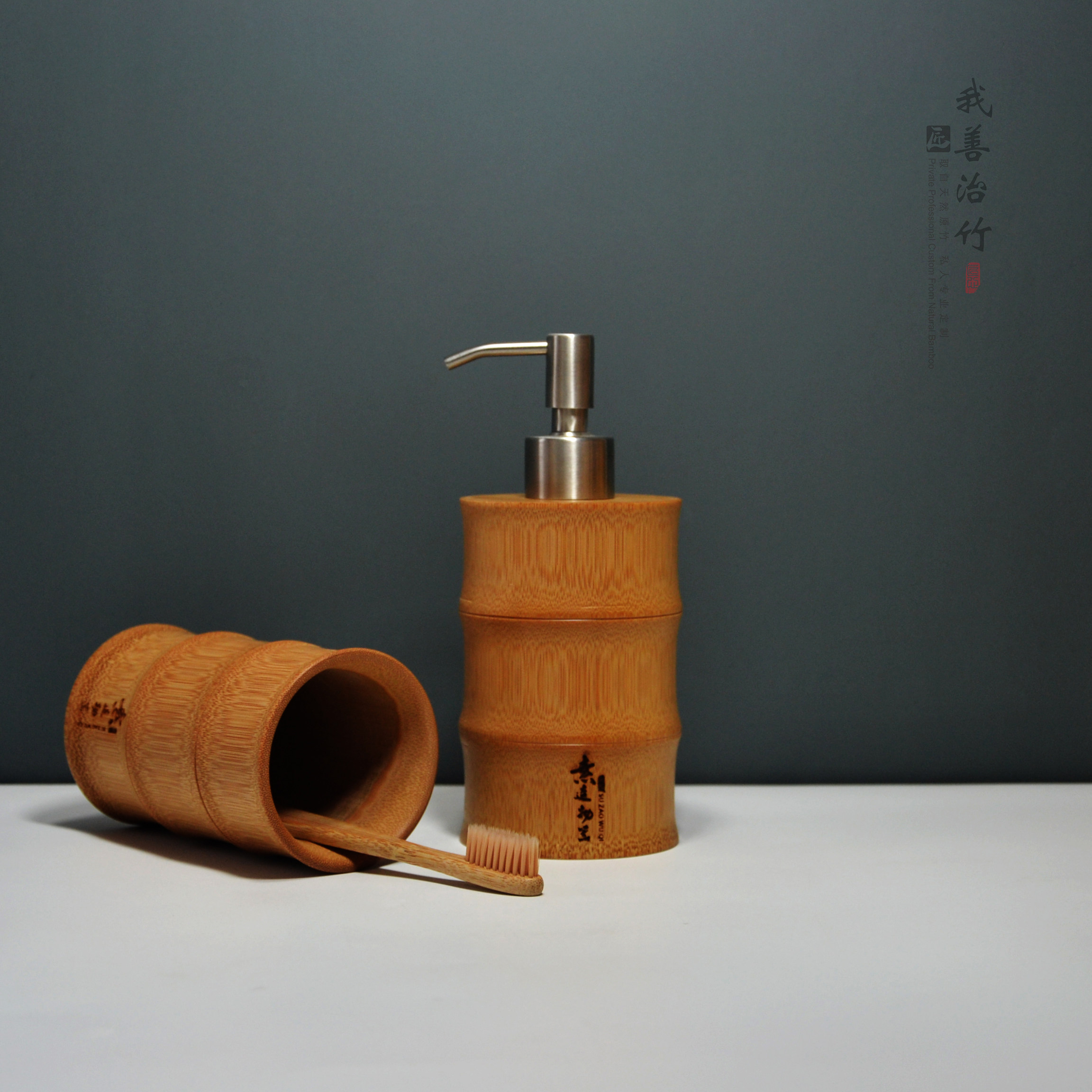 Natural Bamboo Handwashing Liquid Bottle Bamboo Gargling Cup Bamboo body lotion Bottle Bamboo Bathroom Hotel Supplies