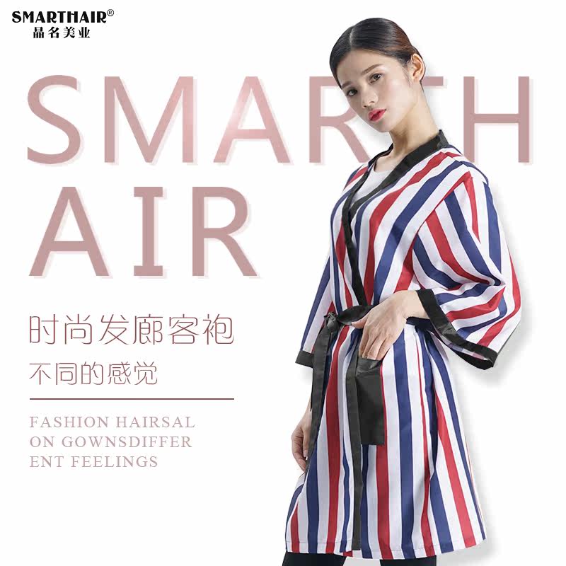 Hair salon special hair salon customer service high-end beauty salon has sleeves Fashion red, white and blue guest robes