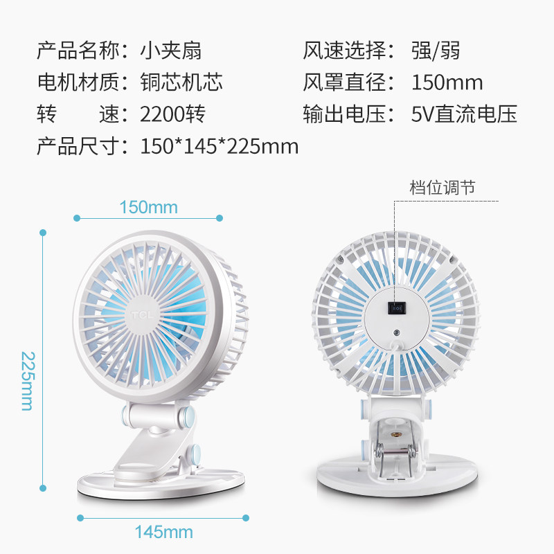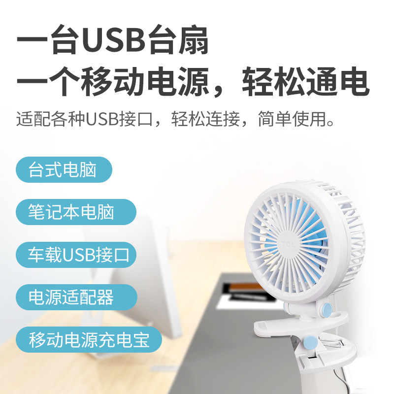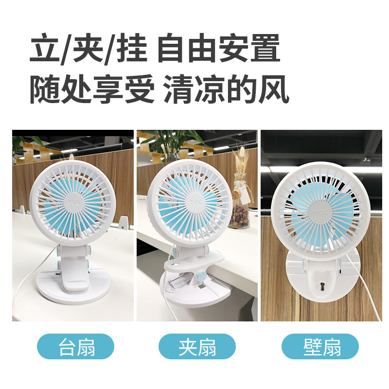 TCL Small Fan Mini USB Bed Mute Student Dormitory Office Desk Charging Portable Desk Clip-on fan