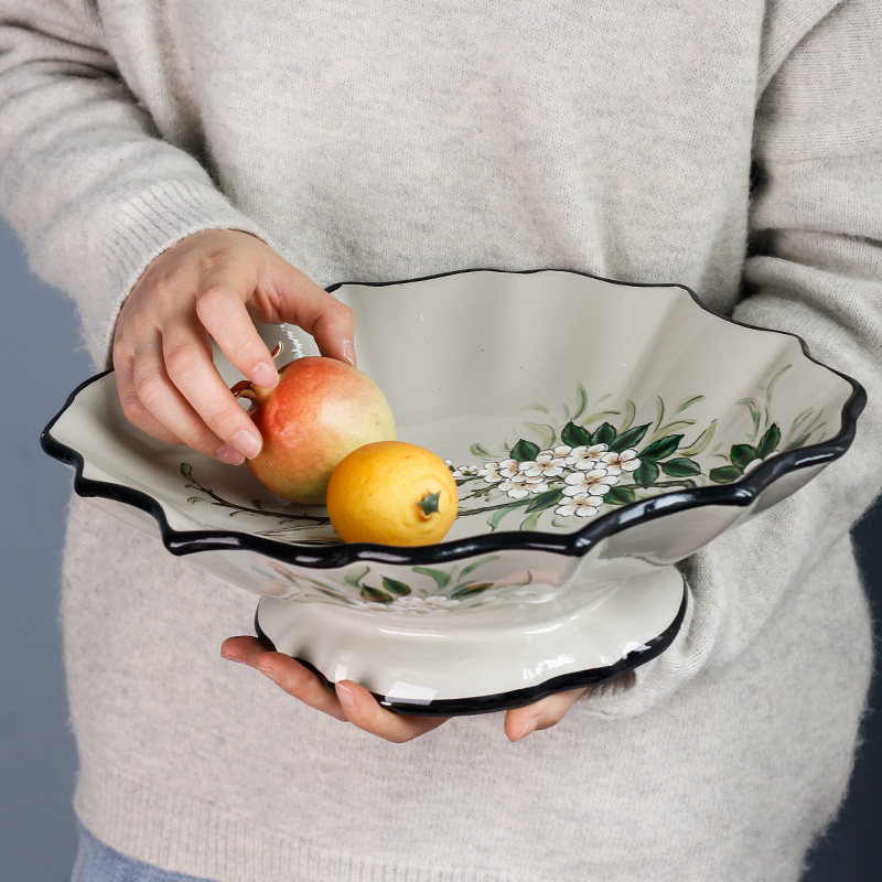 New Chinese Creative Ceramic Fruit Tray Suit Home Living Room Tea Table Large Number Fruit Bowl Decoration Swing Decoration Retro